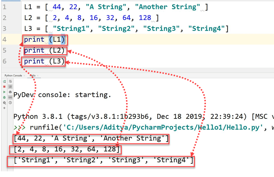 A List is created by putting square brackets around all the elements that are needed to be included in the sequence.